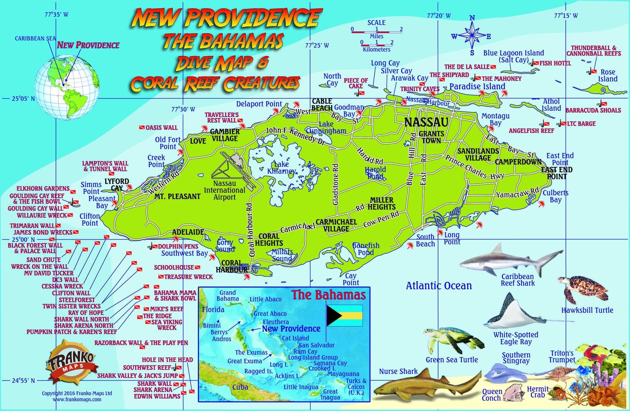 New Providence Island, Bahamas, Fish Card โ Franko Maps